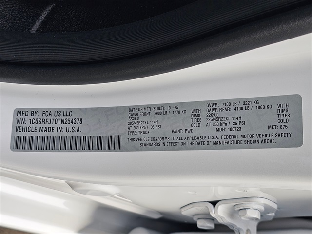 - VIN : 1C6SRFJT0TN254378